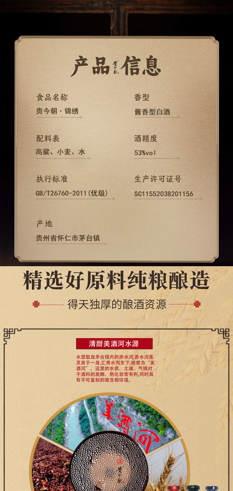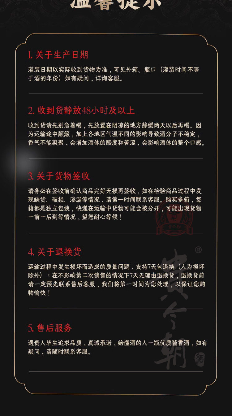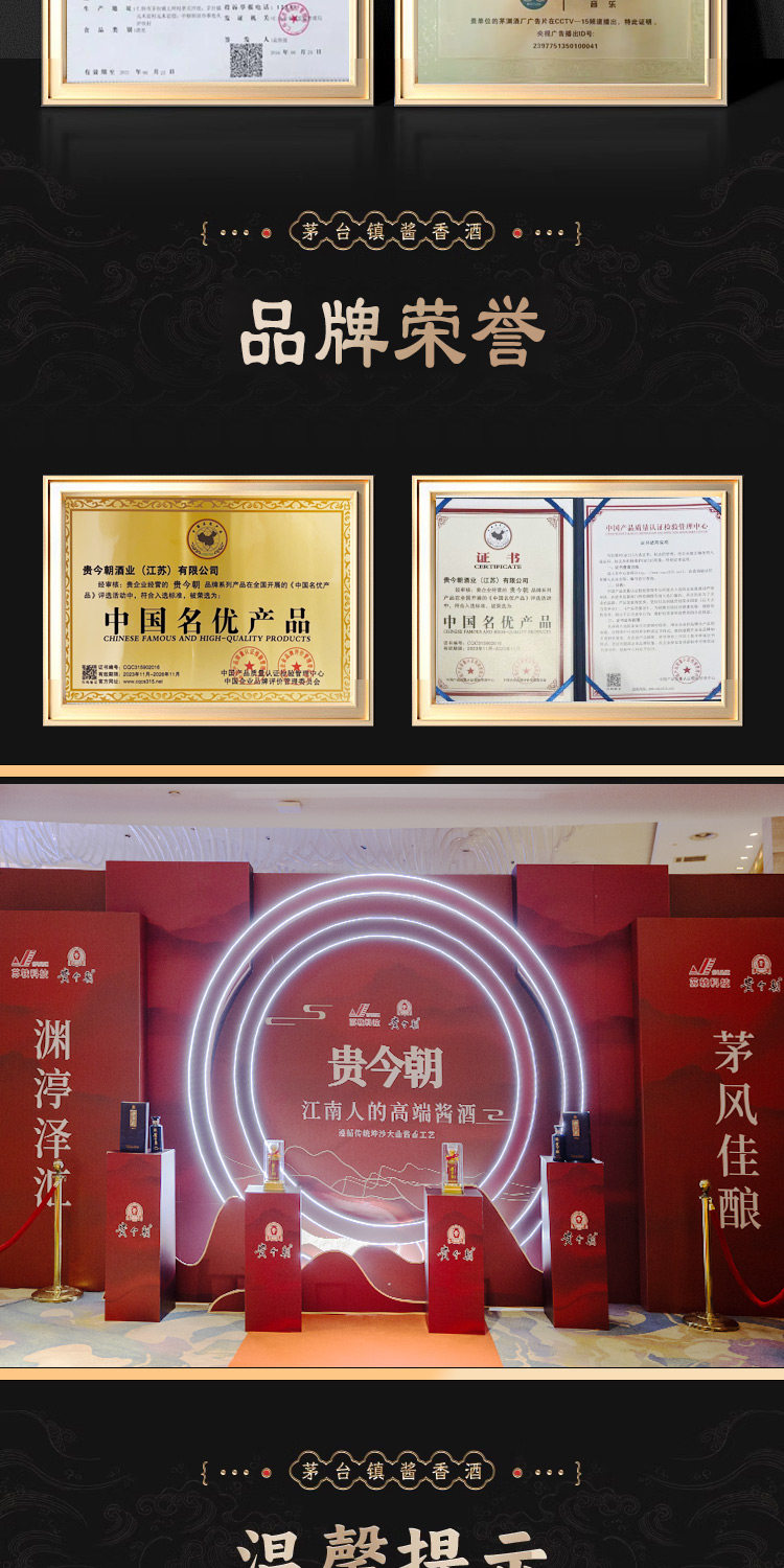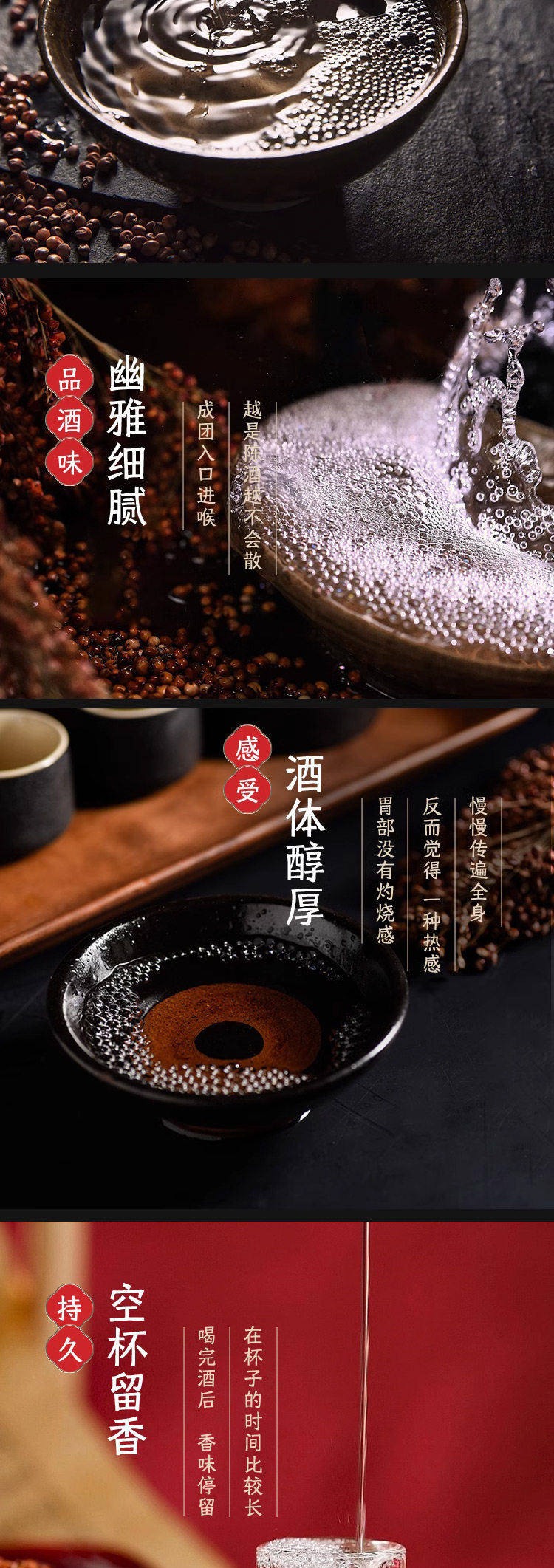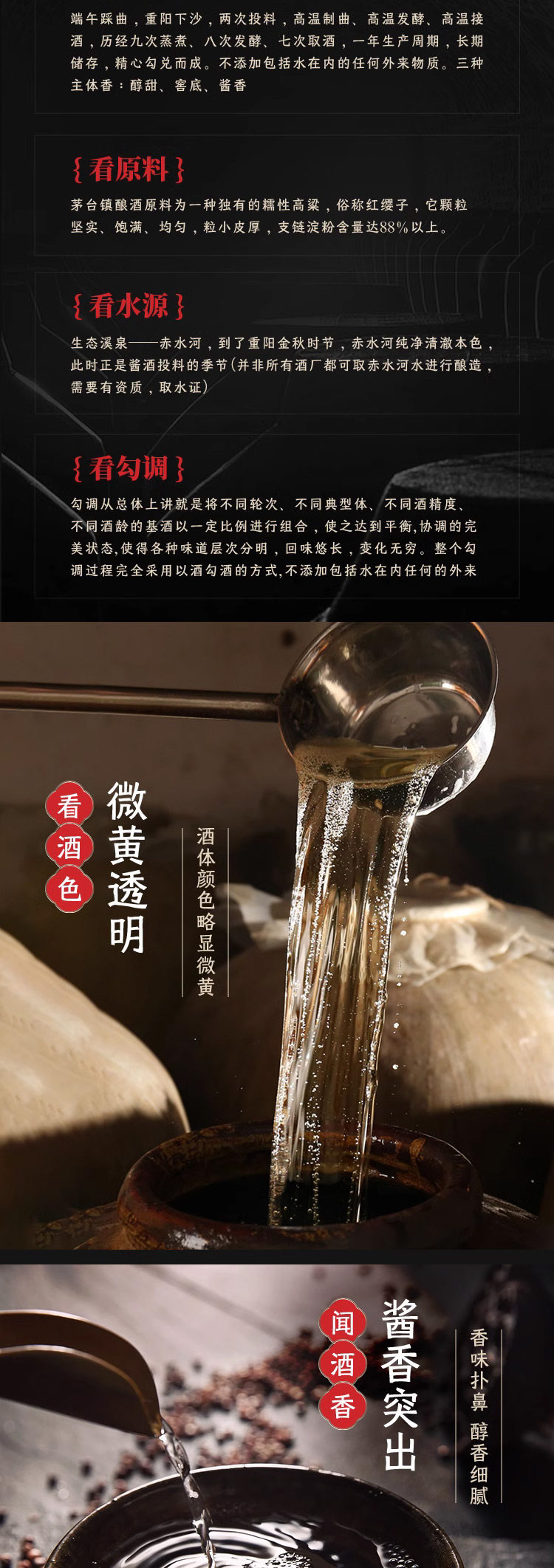 口感特点: 酱香浓郁、陈香醇厚、层次迭进、回味绵长