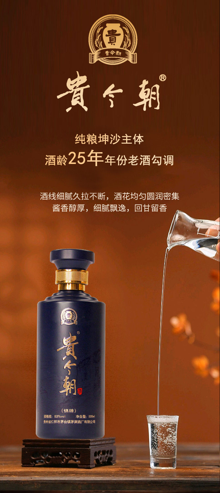 酒体结构: 坤沙大曲,酒龄25年年份老酒辅以秘酒传世勾调